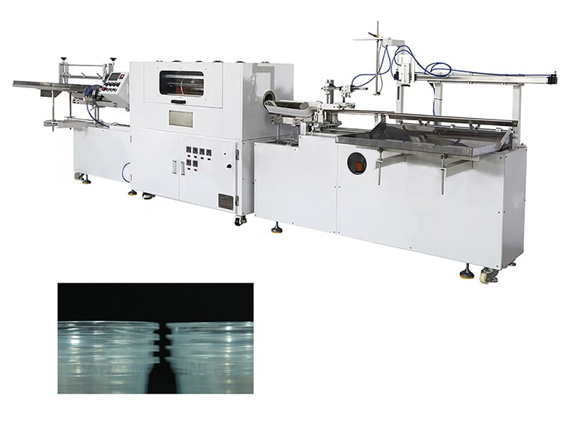Enhance your disposable cup production line with the plastic cup rimming machine. Designed specifically to curl rims of plastic cups made from materials like PVC, PS, PET, modified PP, and environmentally friendly degradable PP. This system automates the entire workflow, including cup feeding, rim rolling, cup discharge, and stacking processes, ensuring efficient and consistent operation.